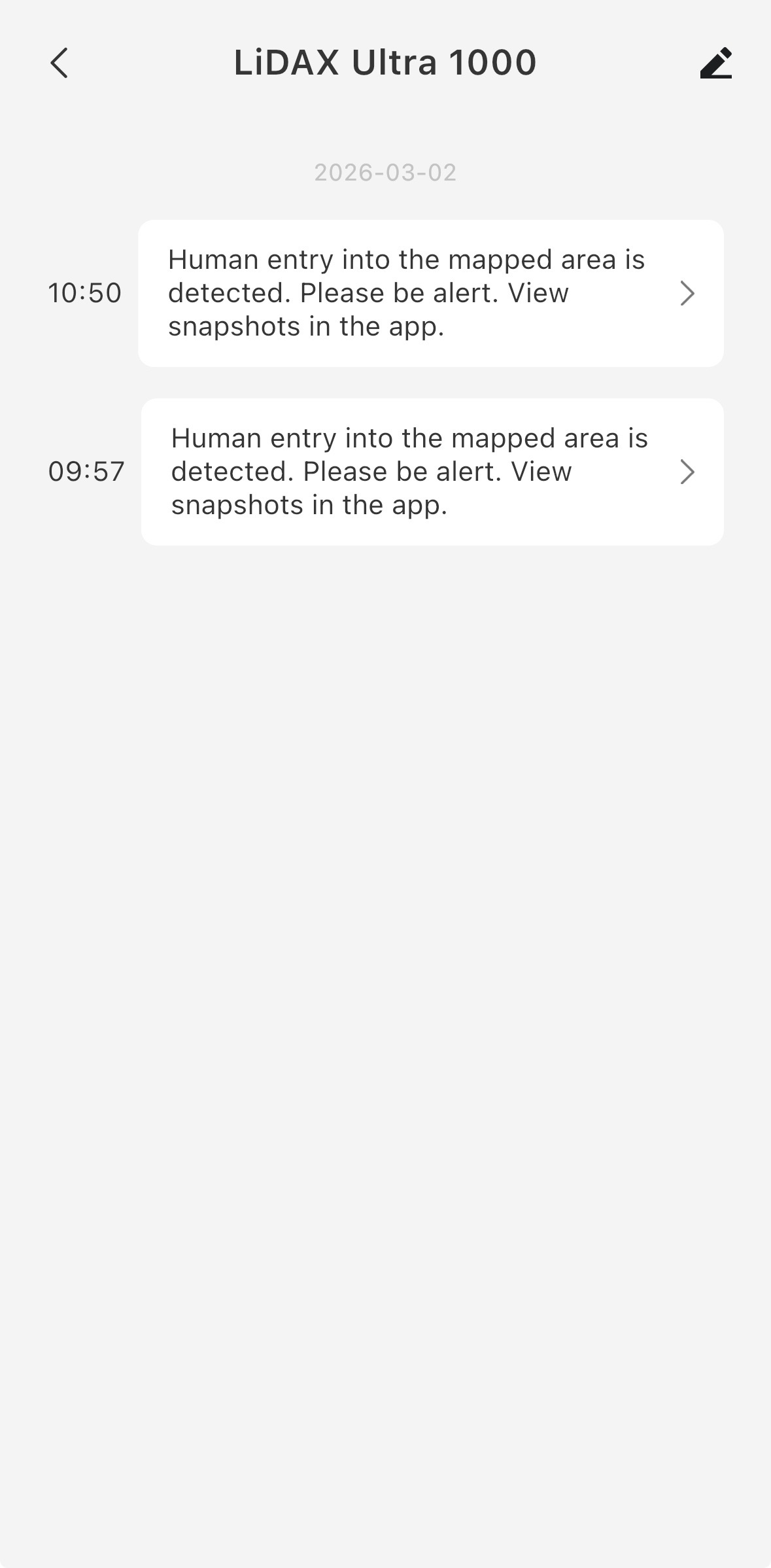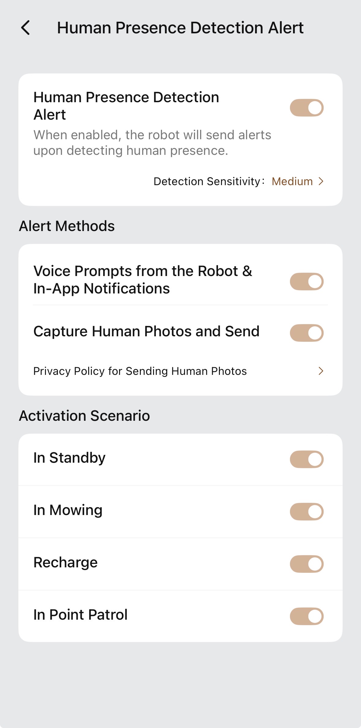 I activated the Human Presence Detection feature with photo capture and I’m getting the alerts from the mower but when I click on them it just takes me to the device page (mower) and does not show the snapshots. Where can I see the photos/snapshots from this feature to identify the human detected?