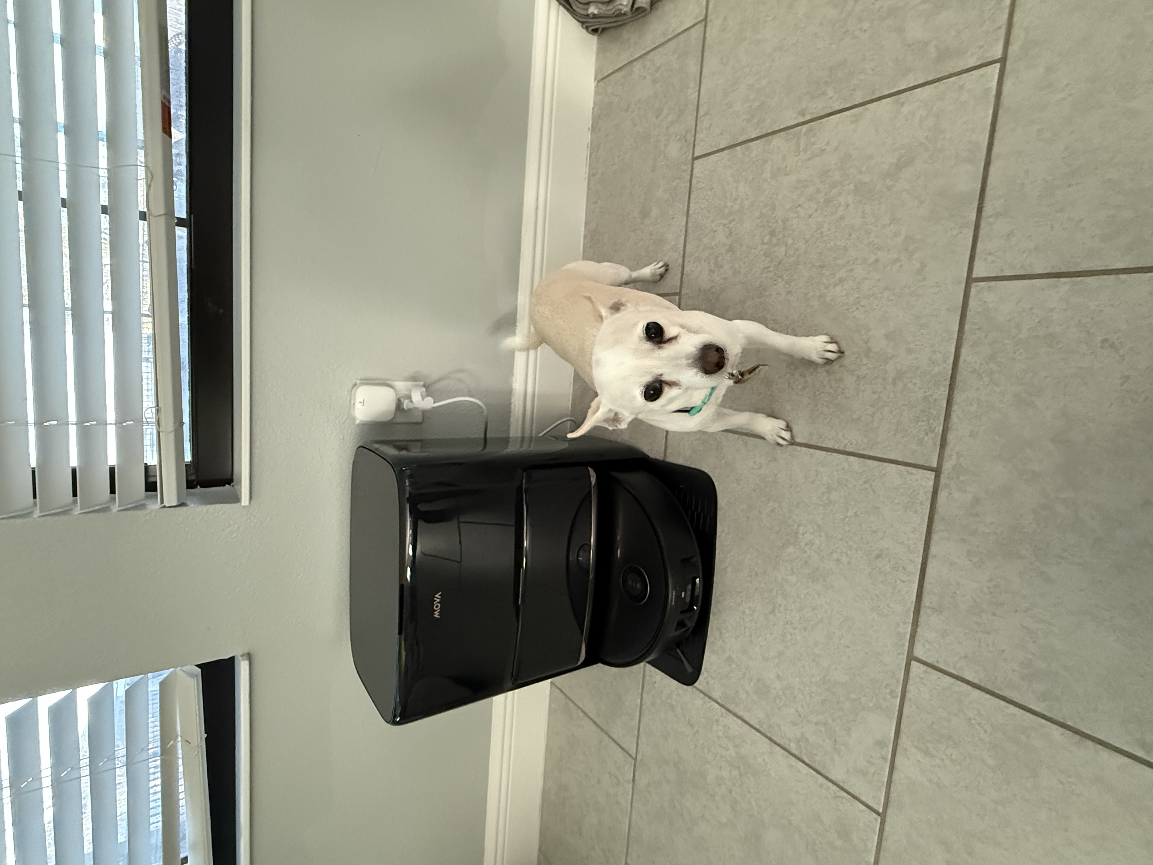 So this past weekend I received my Mova Z60 as part of the "Get & Create" program. We feel very lucky to have this opportunity to put this machine to the test. We have Mova V50 Ultra owners and have been really interested in trying out the Z60 with the roller and seeing how much of a difference the self-cleaning roller would be compared to the mop pads. Packing as expected was excellent and they provided extras for everything such as filters, spinning brushed, mop rollers, dust bags, & cleaning solutions. Unpacking was a breeze as was getting it setup and connected to power. I would say it took 5-10 minutes from the time I opened the box until it was plugged in, connected to the app and firmware was updated. Initial mapping was very quick and under 10 minutes for the entire house. It was very accurate in mapping out all areas of our home and even did a good job in naming most rooms correctly on its own. Editing the map was very simple when I needed to rename a room and join sections together. It did see through my glass sliding door and try to map out my outdoor lanai but I set that as a "No-go" zone on the map so it does not try to mop and vacuum my pavers. We have 2 dogs, the one pictured below is "Loki" and he may have short white hair but he sheds all day and night and his hair blends in with our floors so we are very excited to put the Z60 to the test when it comes to keeping our floors clean on a daily basis from all the dog hair.