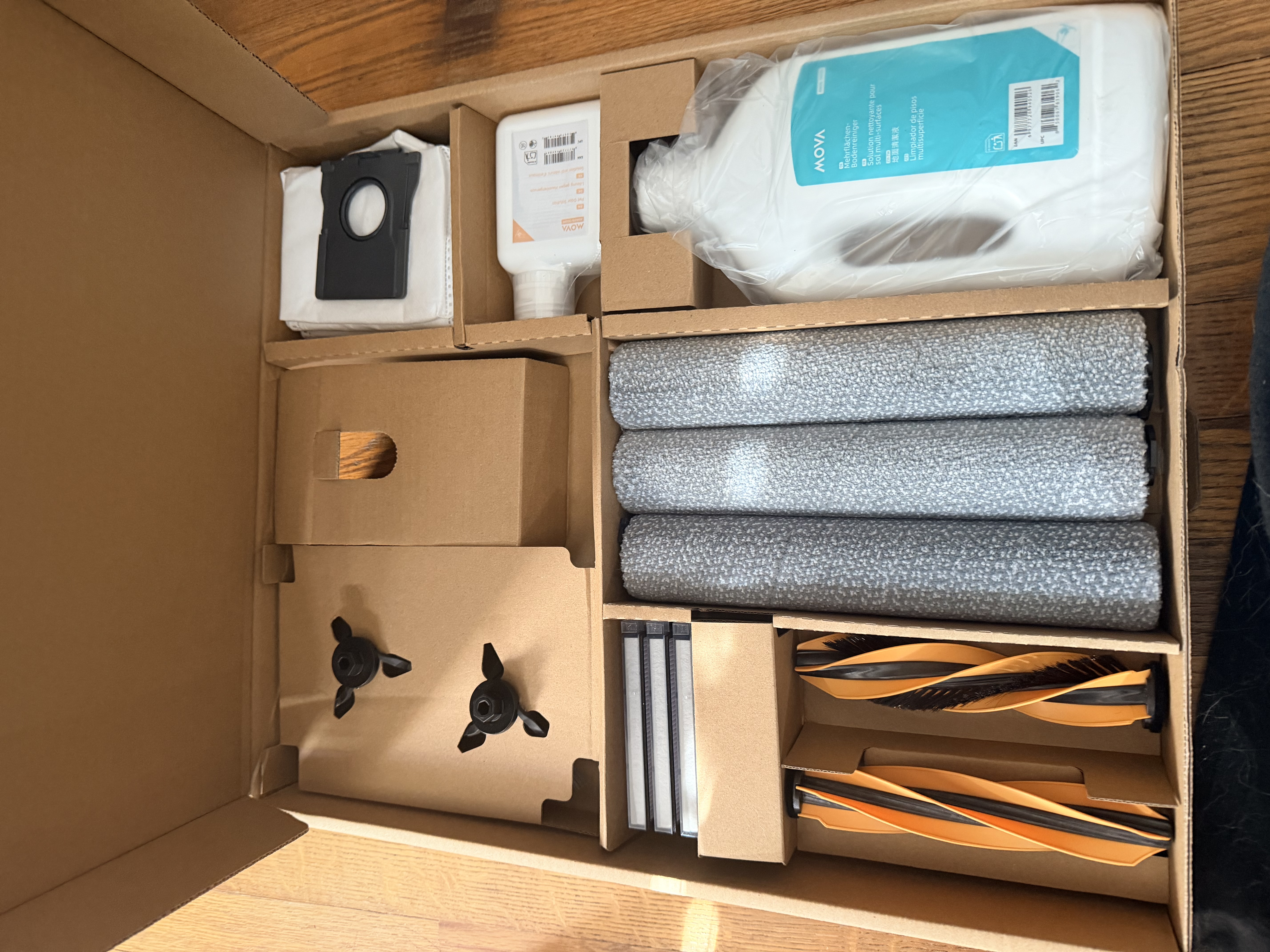 My first impressions were to be amazed by the packaging and the accessory kit. The packaging was well thought out and used no styrofoam. The accessory kit included mops, detergent, sweepers, and filters, all of which should be enough for routine maintenance for a very long period of time.