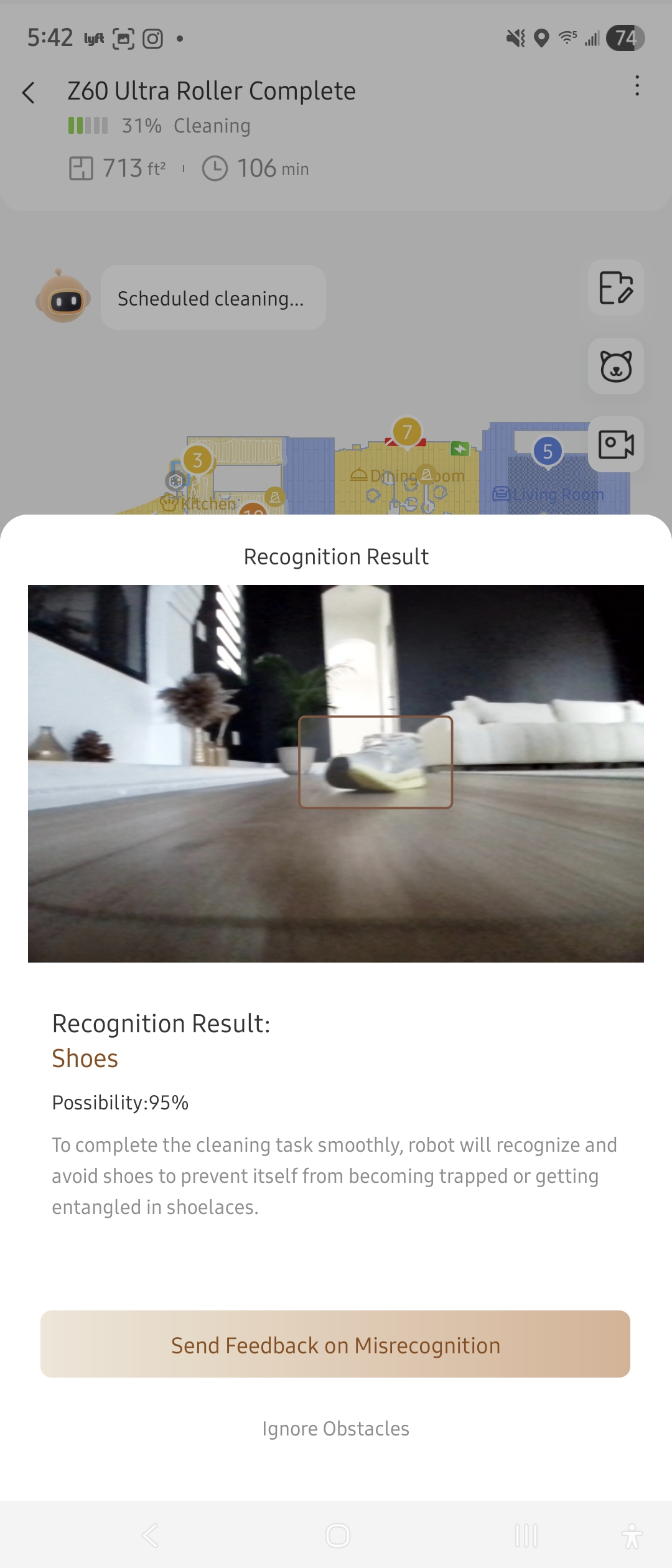 Seeing the detection results directly in the app also adds a layer of transparency to how the robot interprets its surroundings during each cleaning cycle.