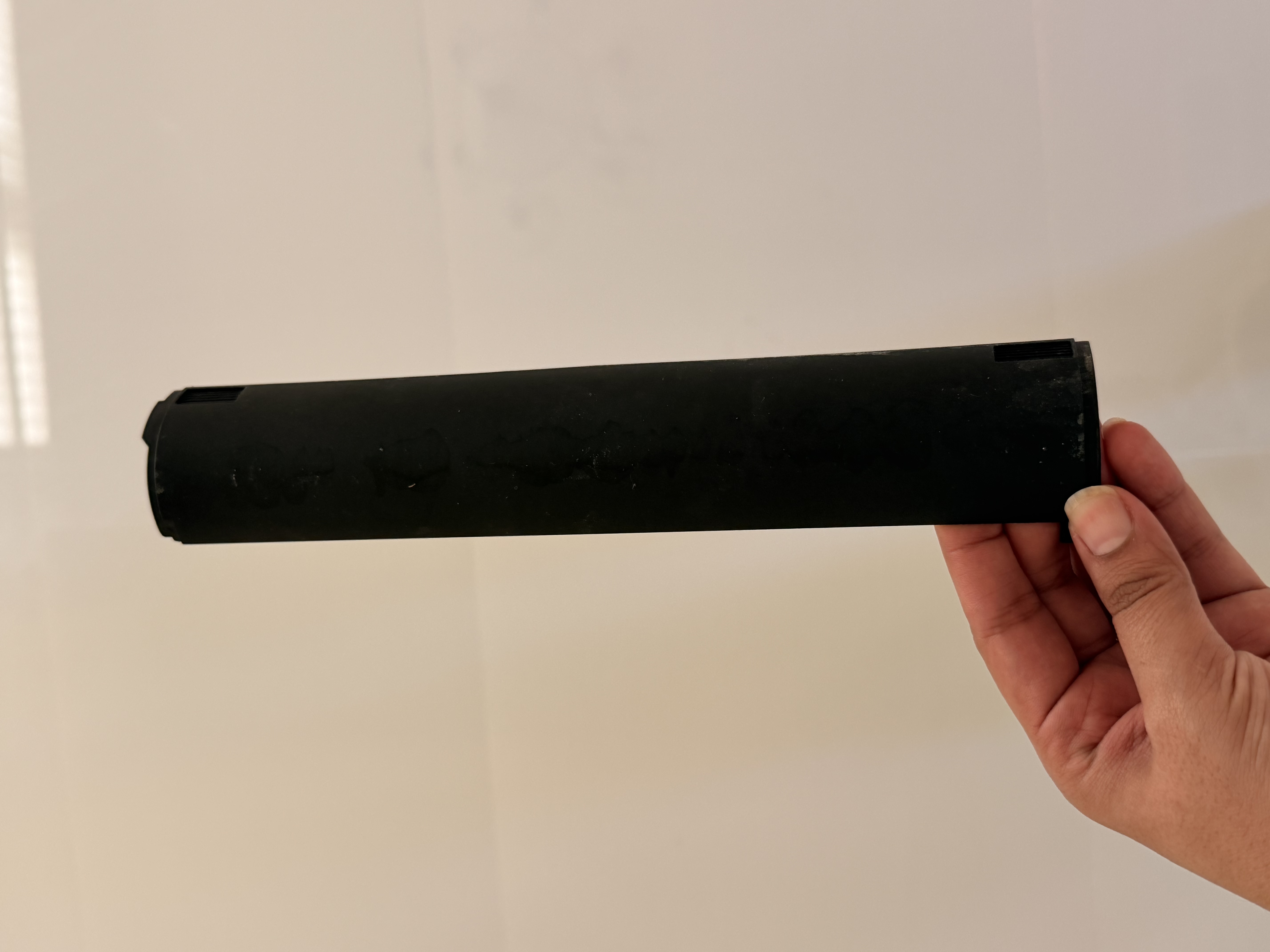 This is the roller brush cover. You simply need to insert it from the area marked in the red box, and then push the yellow button next to it in the direction indicated by the arrow to secure it.