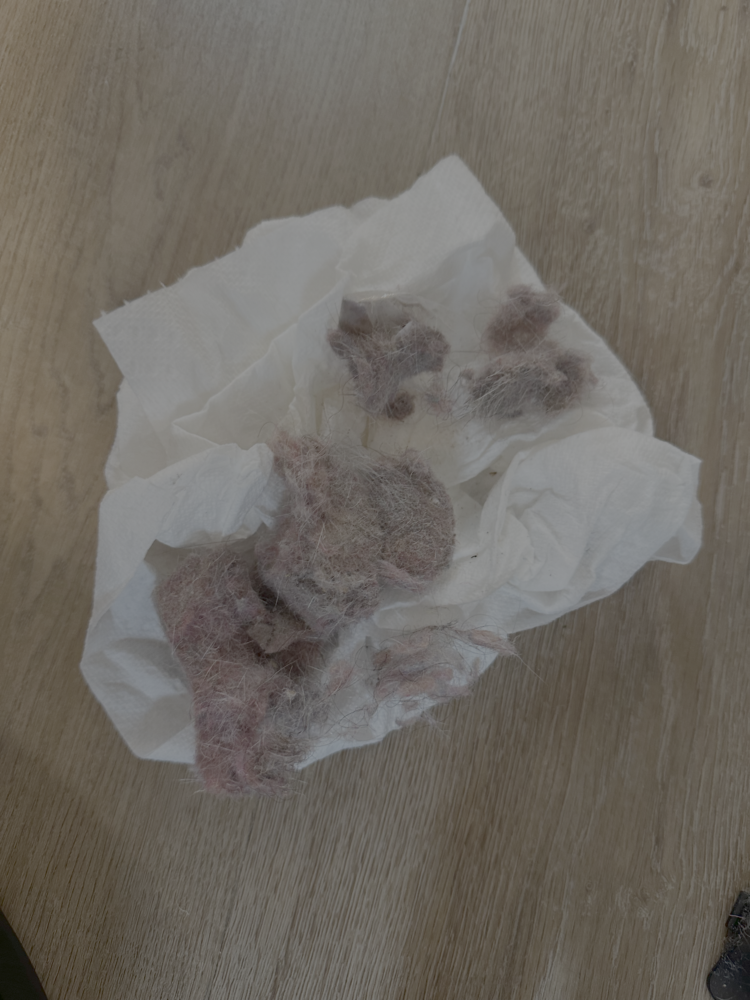 The culprit: a Lifesavers candy wrapper had gotten sucked in and lodged near the main brush intake. On its own that wouldn't be a big deal, but the wrapper created a catch point that accumulated hair, dust, and rug fibers over many daily runs until the whole intake path was clogged. The hairball I pulled out was impressive in the worst way.
