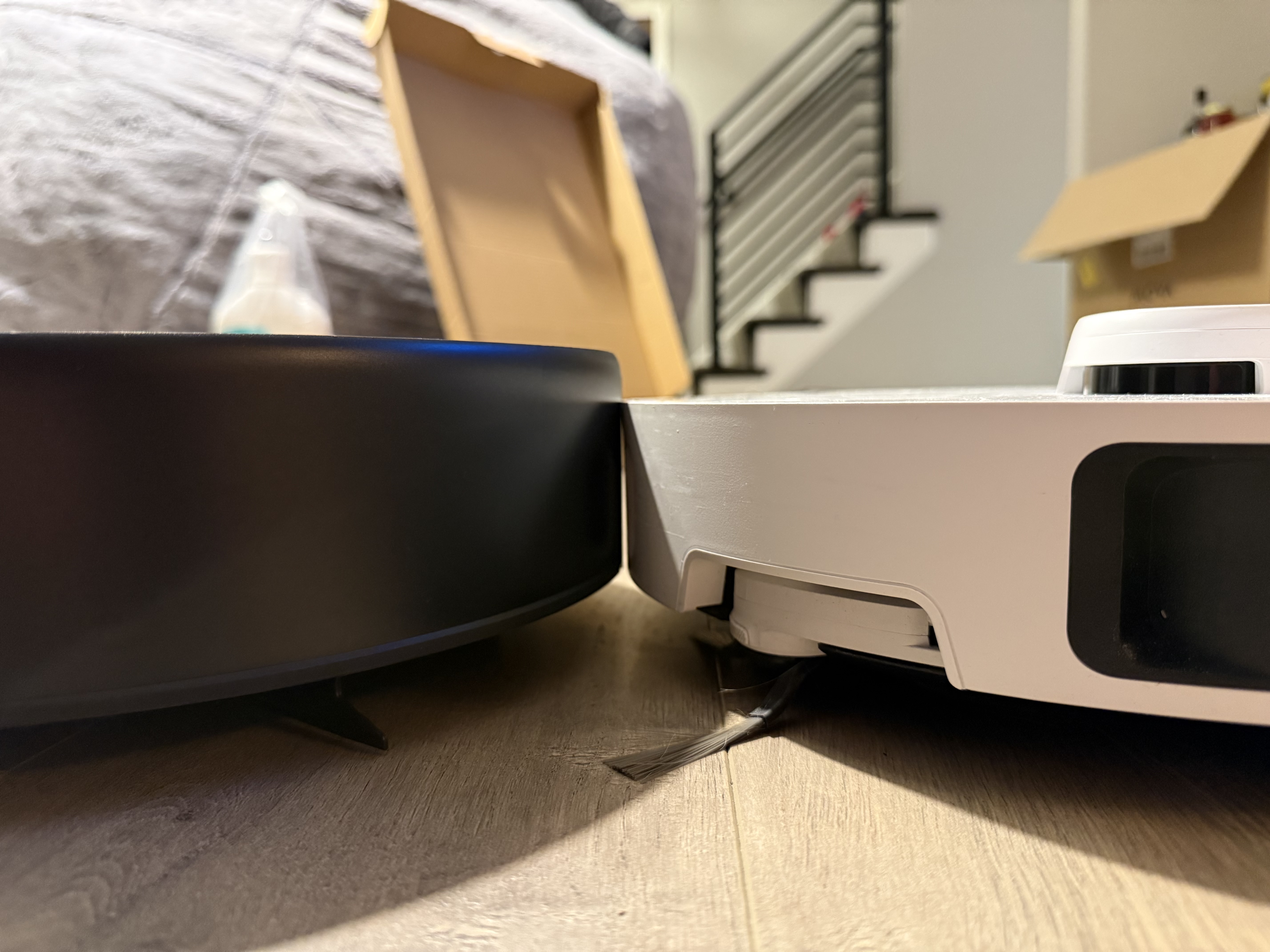 We’ve been using the Mova P1 ultra since November in our home. When I had the chance to test the new Z60 ultra, I thought it would be a good opportunity to compare how this more advanced model compares to one of Mova’s more budget friendly options. I knew I wanted to try a roller mop style robot vacuum because with having a dog and young children in our house, the rotating mop pads of the P1 were nice addition to vacuuming, but ultimately they did not clean the floors quite as deeply as I would’ve liked, especially as we are in mud season for the dog. Immediately I did notice that the Z60 does not seem to clean the house quite as fast as the P10 ultra, I believe the Z60 pauses and spends a little bit more time thinking of its routes and actions before executing. That being said there’s a huge improvement in the mopping function, using a roller mop style mop instead of the rotating mop pads. It’s not just the mechanical action of the roller mop that is improved, but because the Z60 collects dirty water and returns that to the docking station, more of the dirt is being extracted from your floor, instead of only what can be collected in the mop pads. Typically when emptying the dirty water from my P10 I find that it is a light gray, but the water from the Z60 is a much darker brown, almost black. Physically the form factor on these vacuums is very similar, the main body of the Z60 is slightly taller than the P10, but that is made up for by the fact that the LiDar lowers itself into the body when there is an obstacle, I do like the slightly narrower and taller docking station of the P10 a little bit better I believe that the white matte finish doesn’t quite show fingerprints as badly as the black shiny finish of the Z 60 which in my house is not worthy because I have small toddlers who lead fingerprints on everything that being said the function and maintenance of both docking stations is very similar. Overall, I love our Mova P10 ultra. We will be keeping it and moving it to the upper level of our home to keep our bedrooms and bathrooms clean but definitely will be keeping the Z60 on the main floor of the house to tackle the heavy duty workload that is involved in keeping our kitchen and living room floors clean on a daily basis.