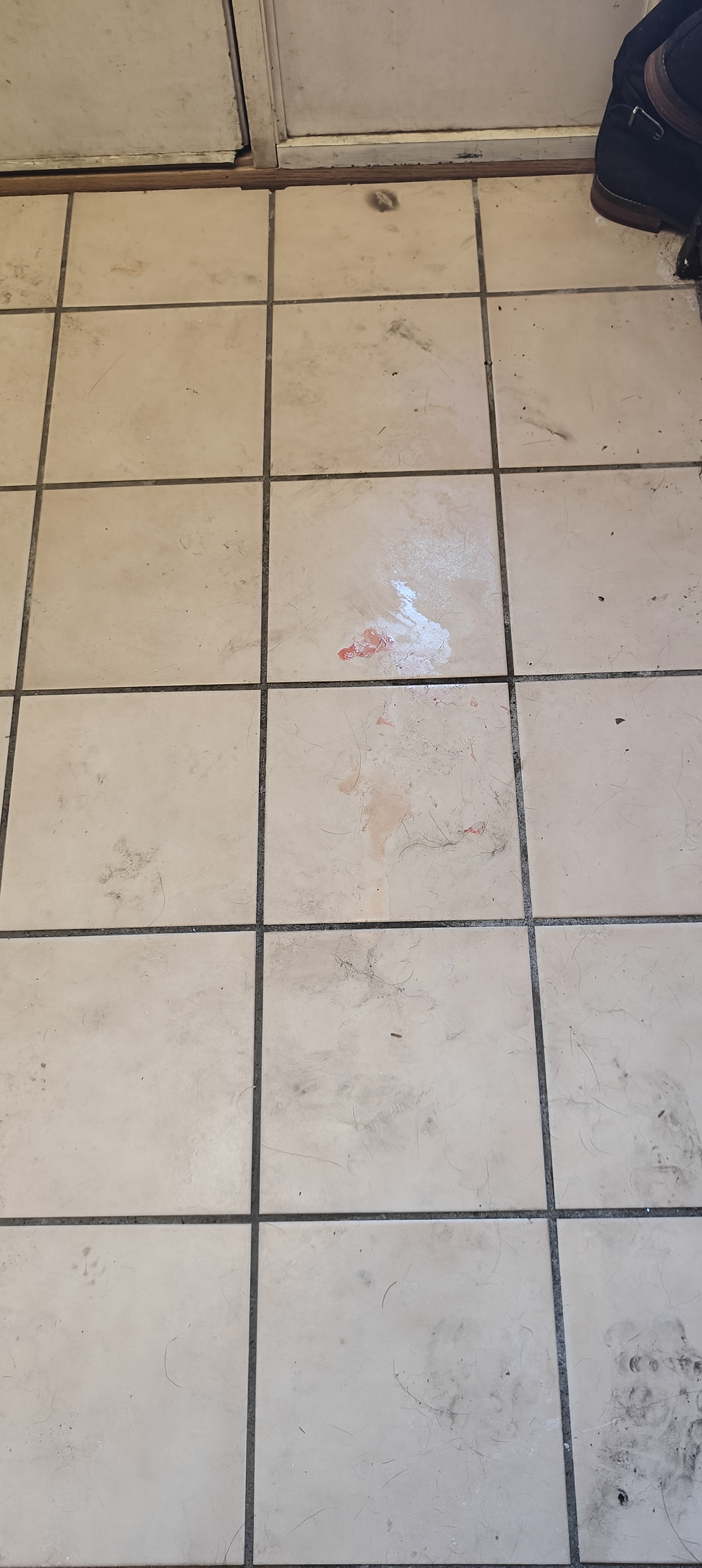 After another few days of people leaving their snow covered boots on the tile, the entryway was ready for a thorough Z60 cleaning. This time, the robot faced the additional test of cleaning up dry, melted sugar. Someone left a candycane on the floor, in a melted snow puddle.