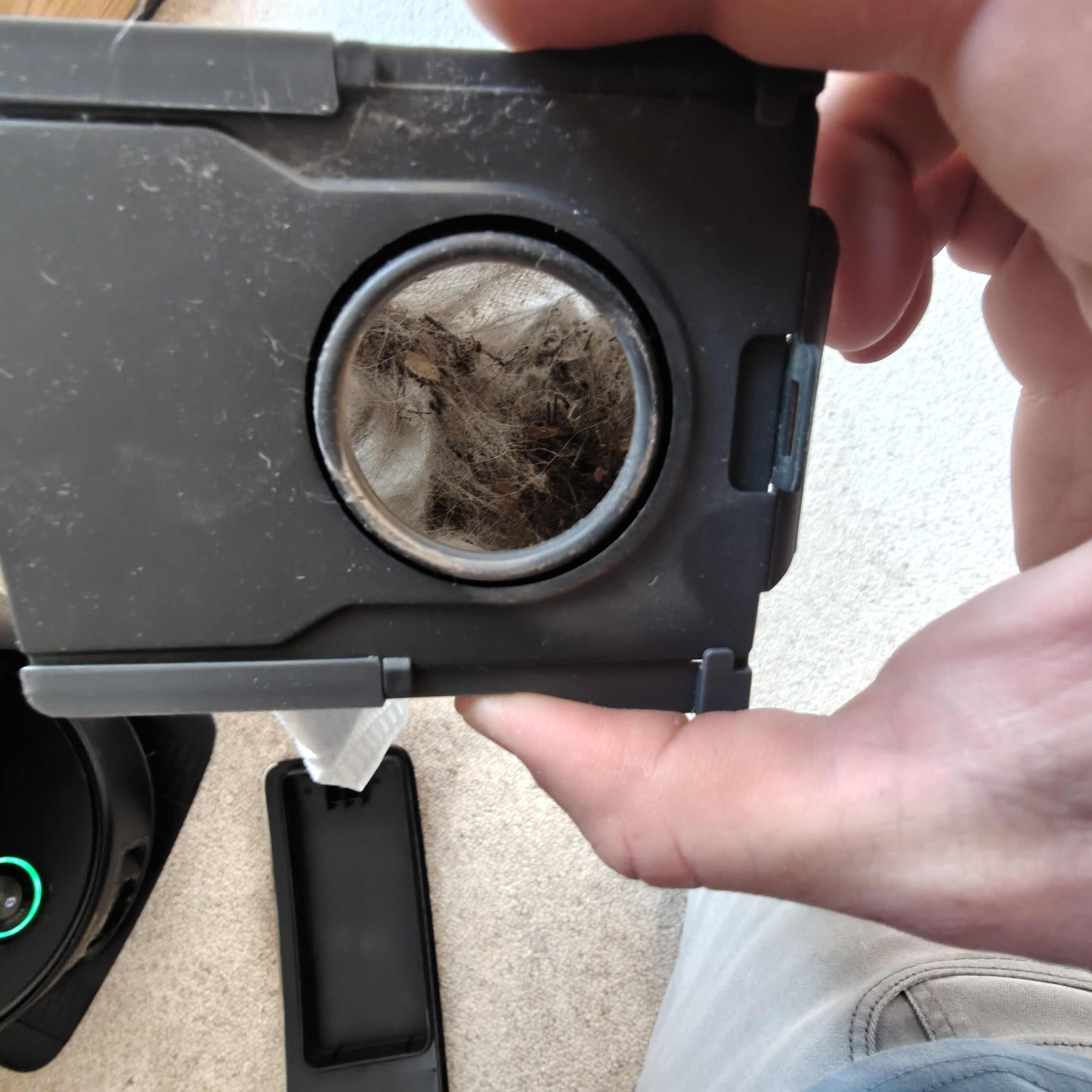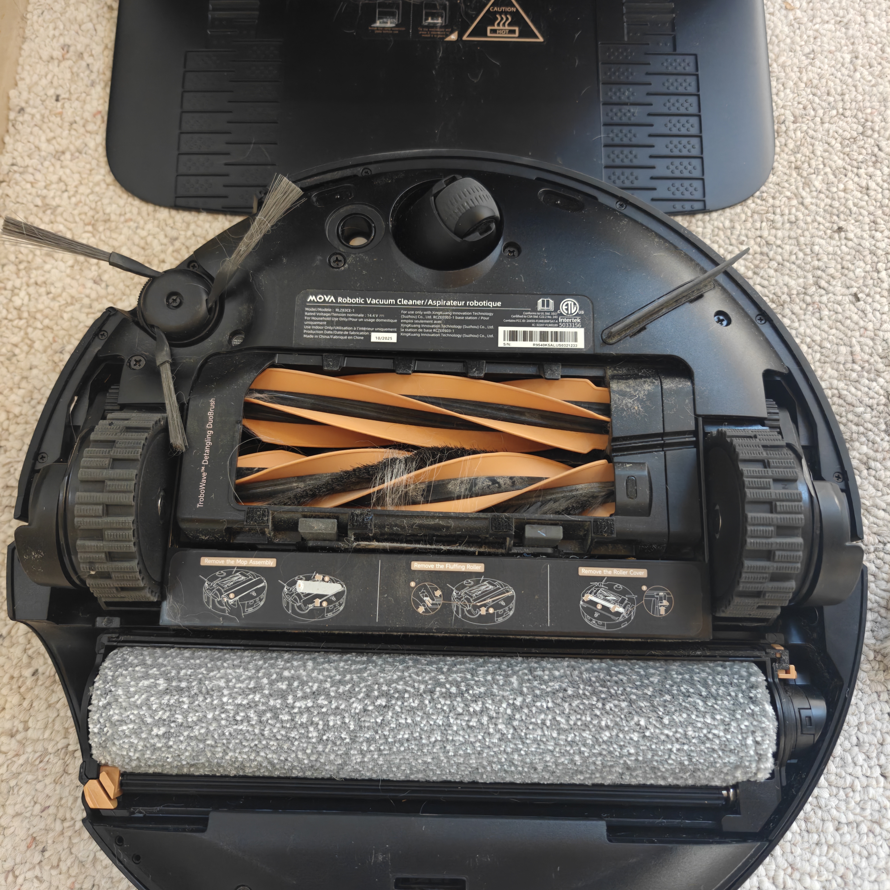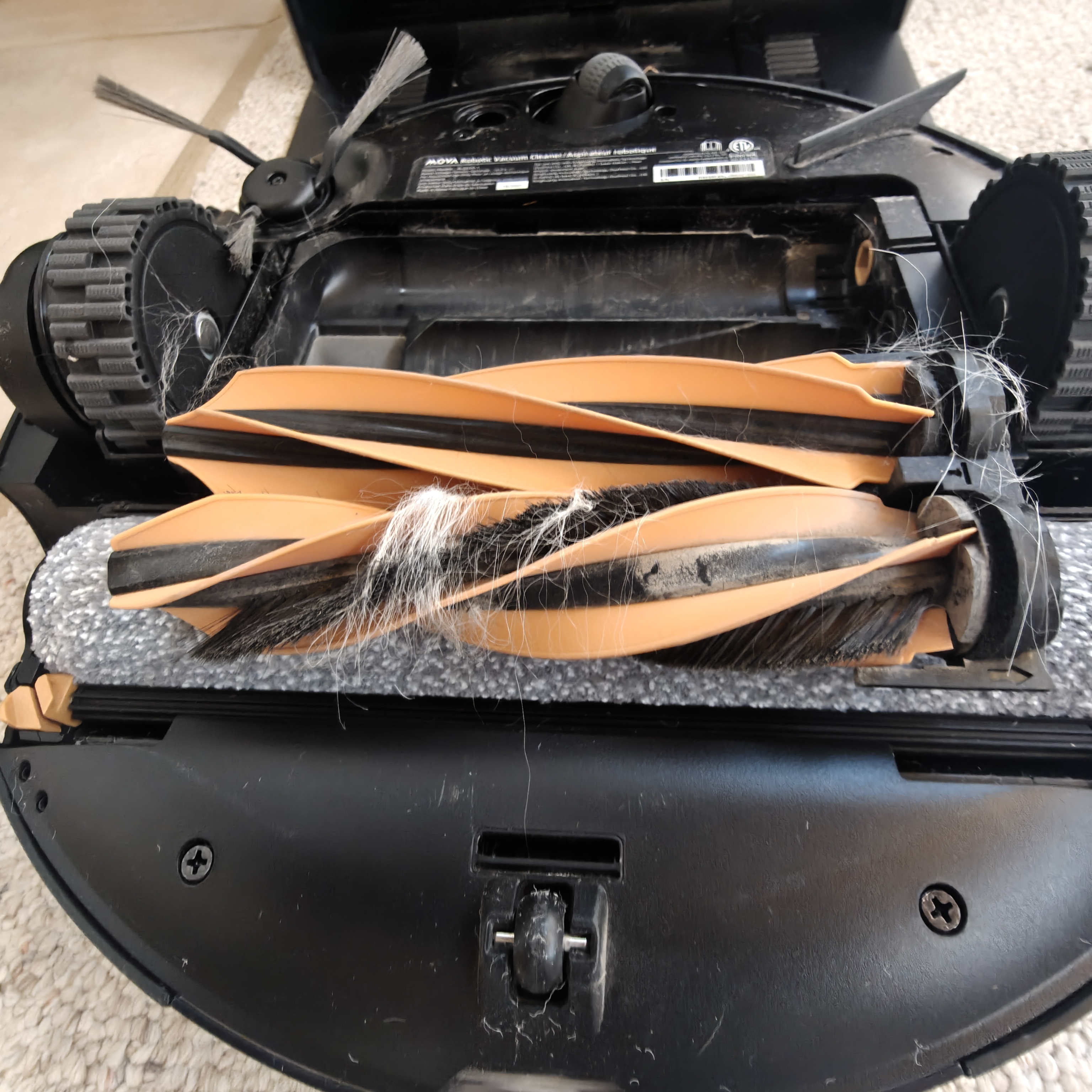 I ran the new Z60 for its first cleaning through my entire house. I used the standard settings with "boost" activated over carpets but the side brush not activated. At the end of the run I turned it over to see how it had handled my dogs hair. Unfortunately there was hair that had tangled around the brush - this was after it had self emptied several times and the hair was still stuck. This was concerning because I've owned a MOVA Q50 Ultra for several months and have never experienced any hair tangling. However, I decided to leave the tangle and let it run a few more times to see what would happen. To my surprise, I checked it again and it hand untangled itself! Very impressive and a good sign that it can handle hair in the long run. There was also a good amount of dirt and debris picked up in the dust bin. #sponsored, #GetYourZ60, #Z60URC