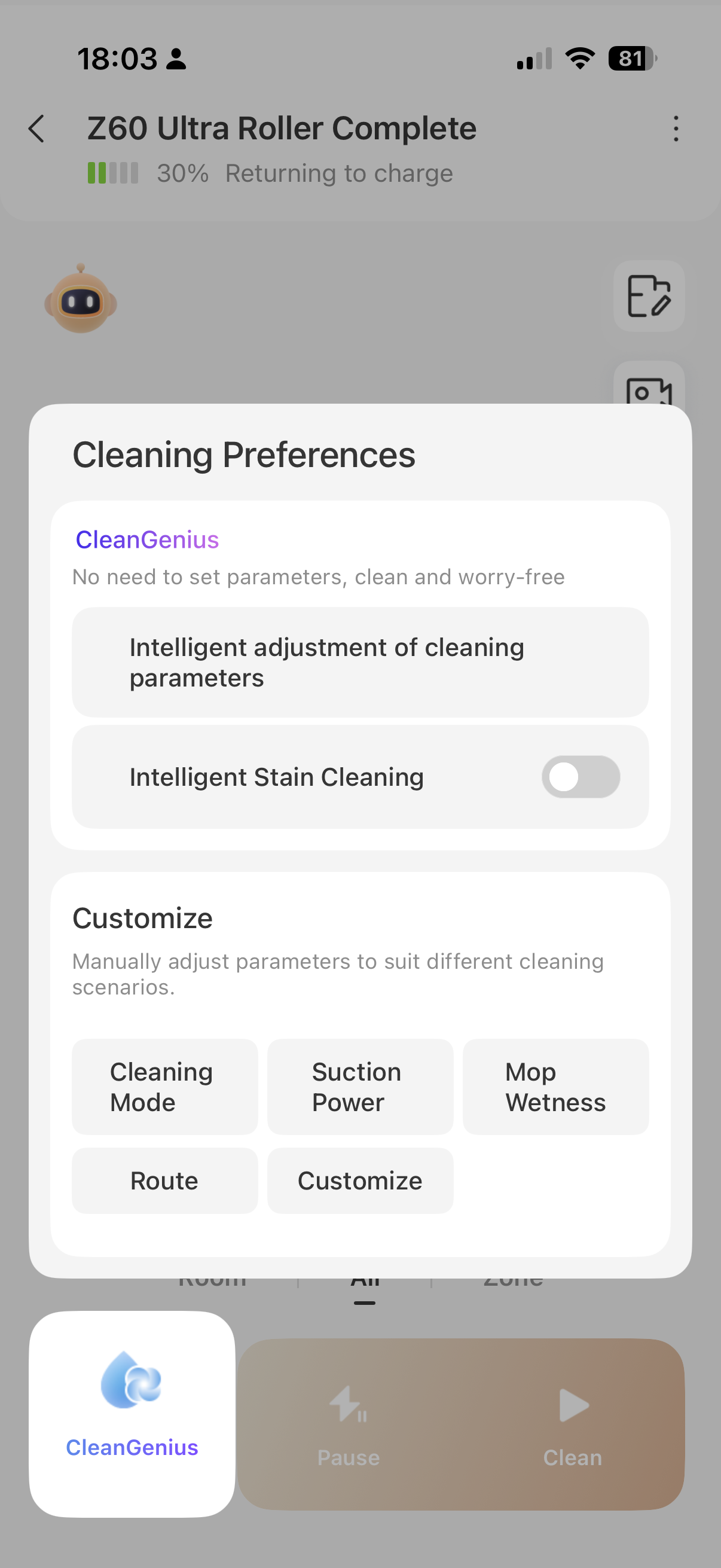 The app is very user friendly. I prefer to have my robot vacuum on a daily schedule to clean while i’m away at work. It has the same custom settings as the S20, so i was easily able to make a cleaning schedule. Rearranging the rooms and mapping was very simple as well, also similar to the S20. The differences i’ve noticed in the app between the two are the more detailed cleaning preferences for the Z60, like “Intelligent Stain Cleaning” and I’m still testing different settings and playing around with the app to really get a feel for how it compares.