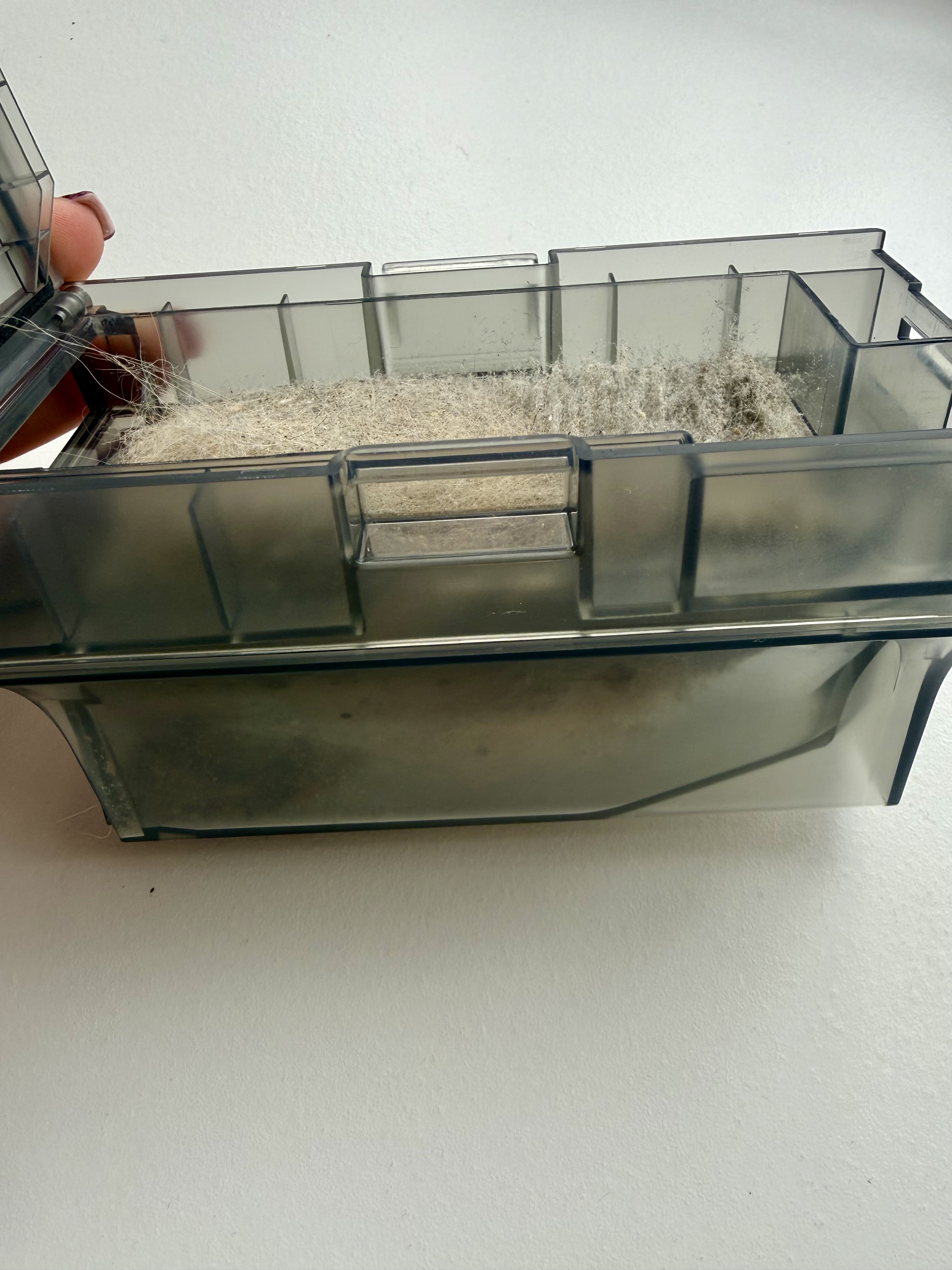 After covering only 65% of the room, the Z60 headed back to the station. The internal bin was completely packed. It managed to pull out a mix of long, soft Maine Coon fur and those stubborn, needle-like short hairs from my Chihuahua. If you have a Chihuahua, you know those hairs are nearly impossible to get out of carpets, but the Z60 did it!