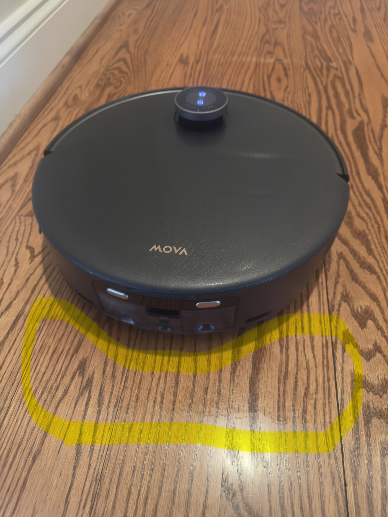 I’m putting the MOVA Z60’s mopping capabilities to the ultimate test in my hallway today. I’ve been really impressed by how the roller mop handles even the toughest, dried-on spills near my cabinets. One thing to watch out for is that the clean water tank runs dry pretty quickly if you use the deep water setting, so you might have to refill it when it’s in the middle of its task. So it actually scrubs the surface and leaves the hardwood floors looking polished and streak-free instead of just dragging a damp cloth around.