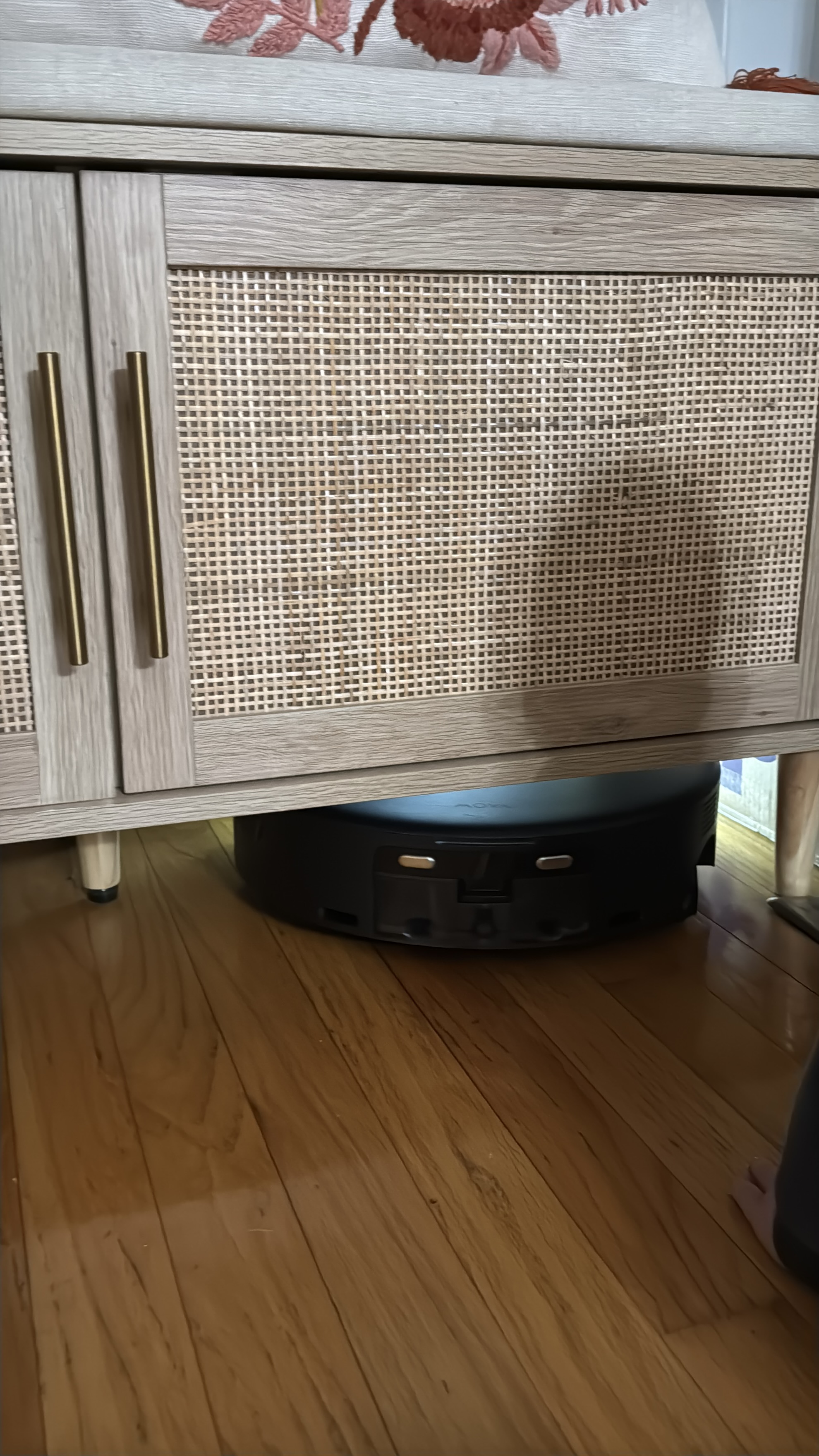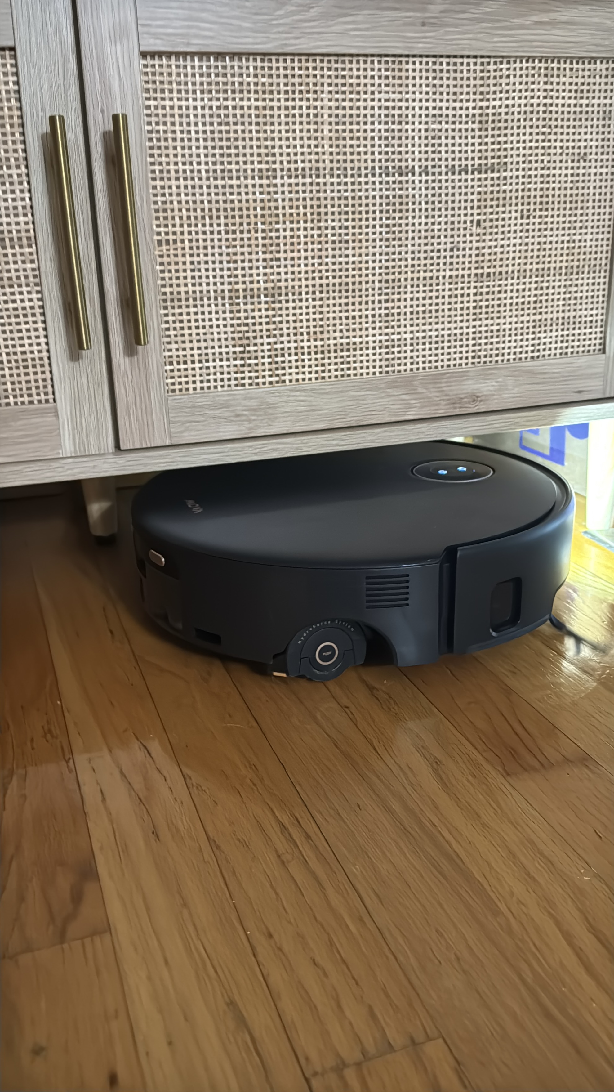 In the pictures, you can see a good example under our shoe bench where my golden retriever’s hair tends to build up. I marked that area, and the Mova went right to it, lowered its lidar to fit underneath, and quickly vacuumed and mopped. It’s nice being able to target those problem spots without overthinking it.