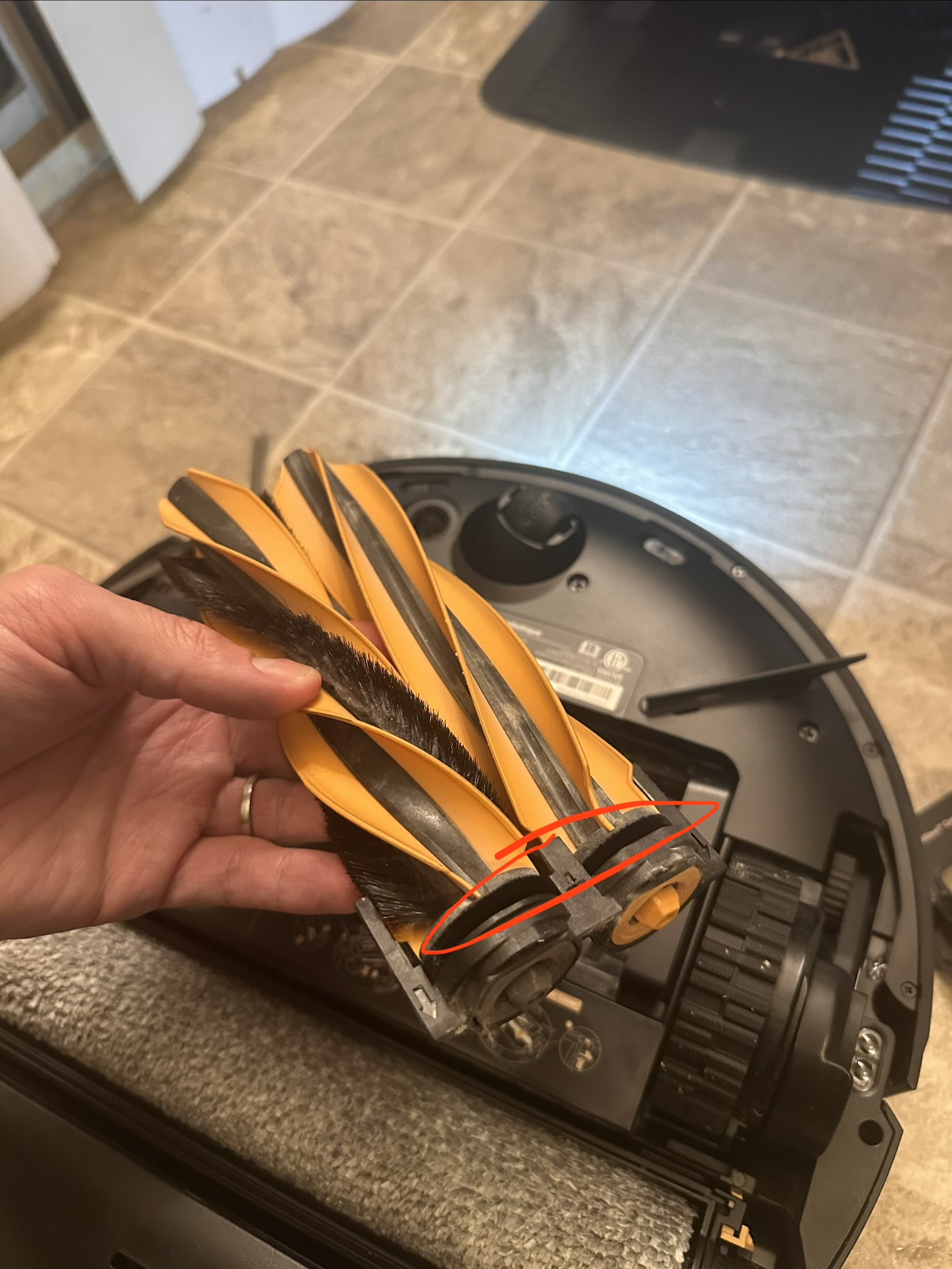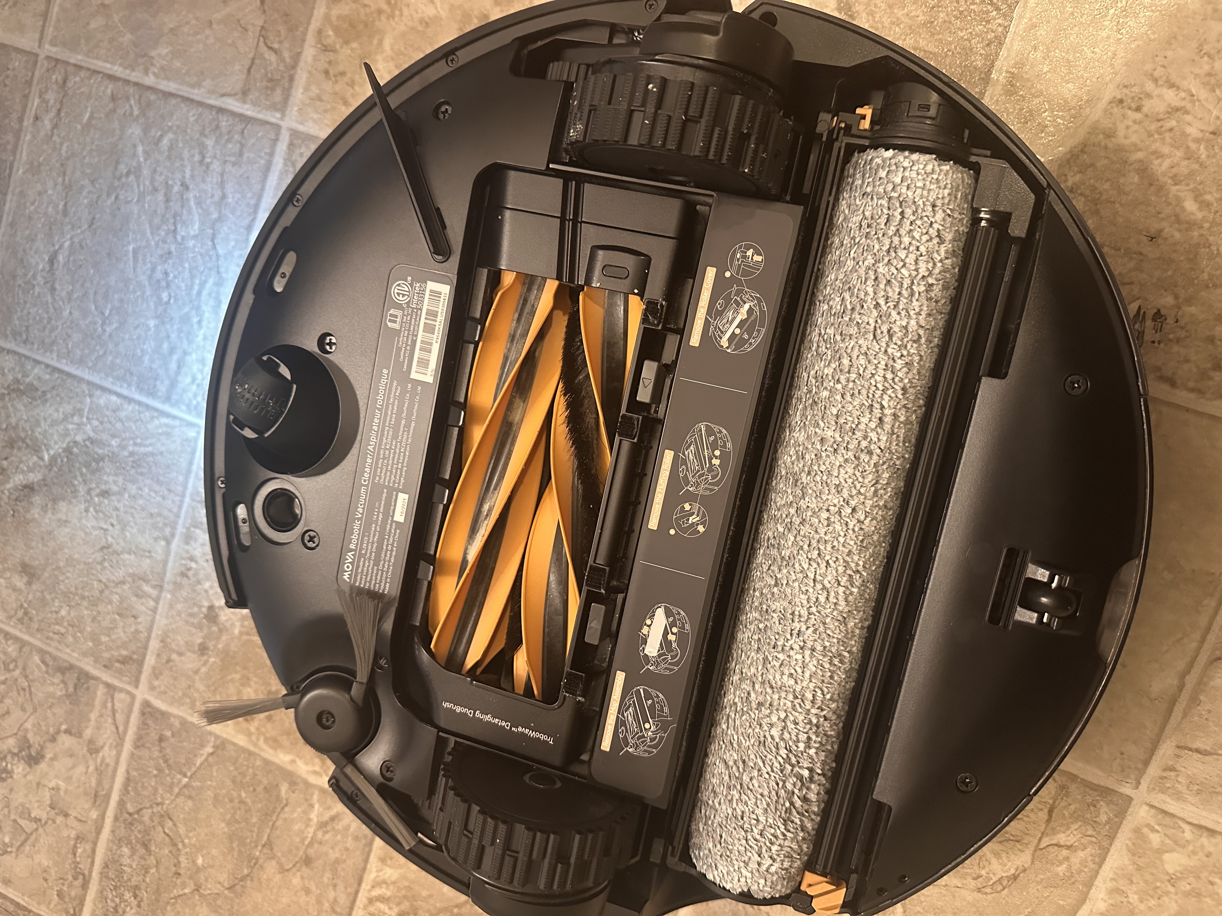 In one of my photos, I circled this cloth-like black strip near the base of each brush that I believe is meant to prevent hairs from getting tangled. This is a minor detail that I think will often get overlooked - on some robot vacuums, hair sometimes gets tangled on the brush itself, but it often gets tangled near the base instead of on the brush. I absolutely love this tiny detail. I’m so impressed by the attention to detail that MOVA put into the Z60. Additionally, on the other end of the brush, it tapers off, which also helps prevent tangles.
