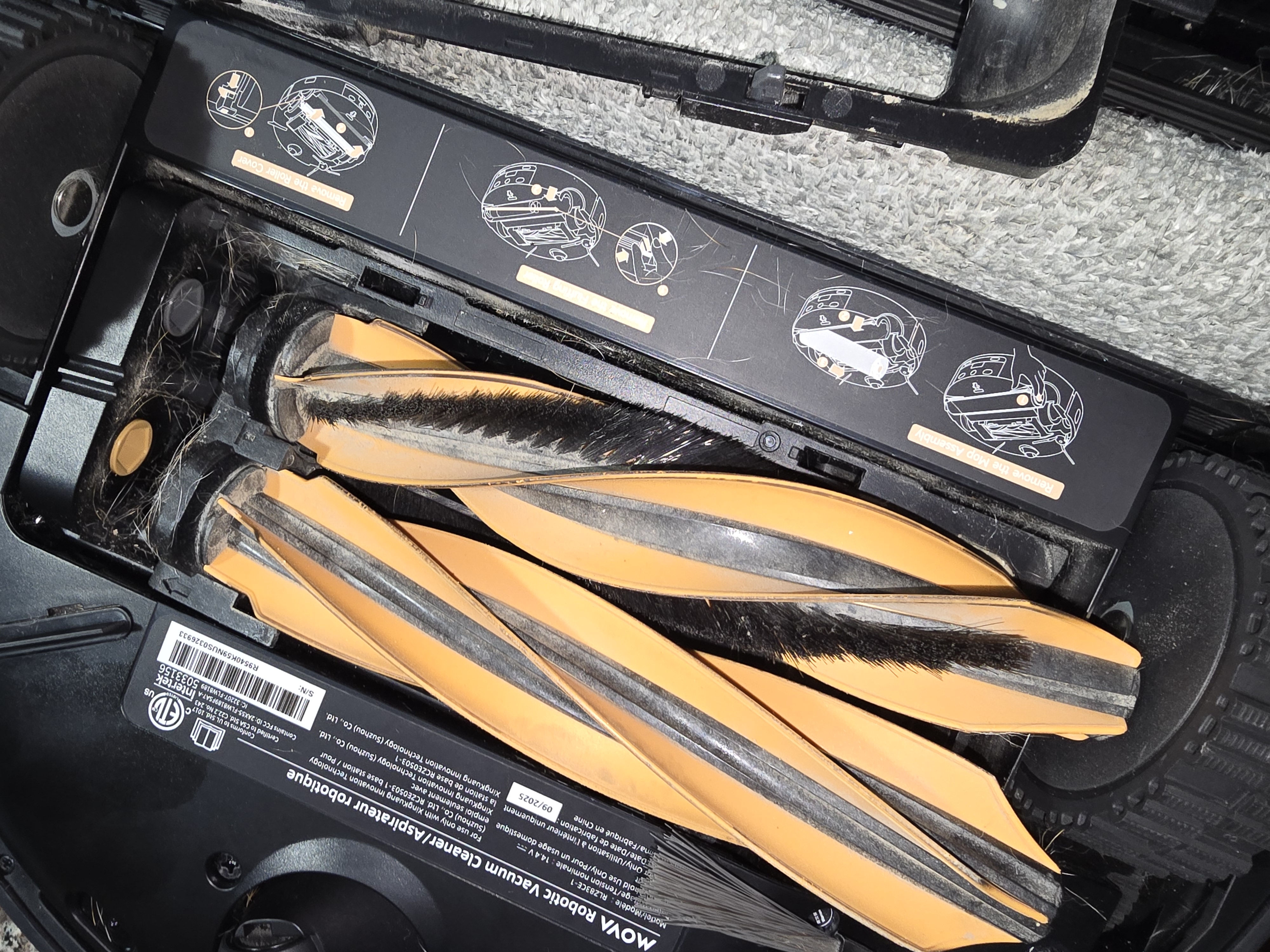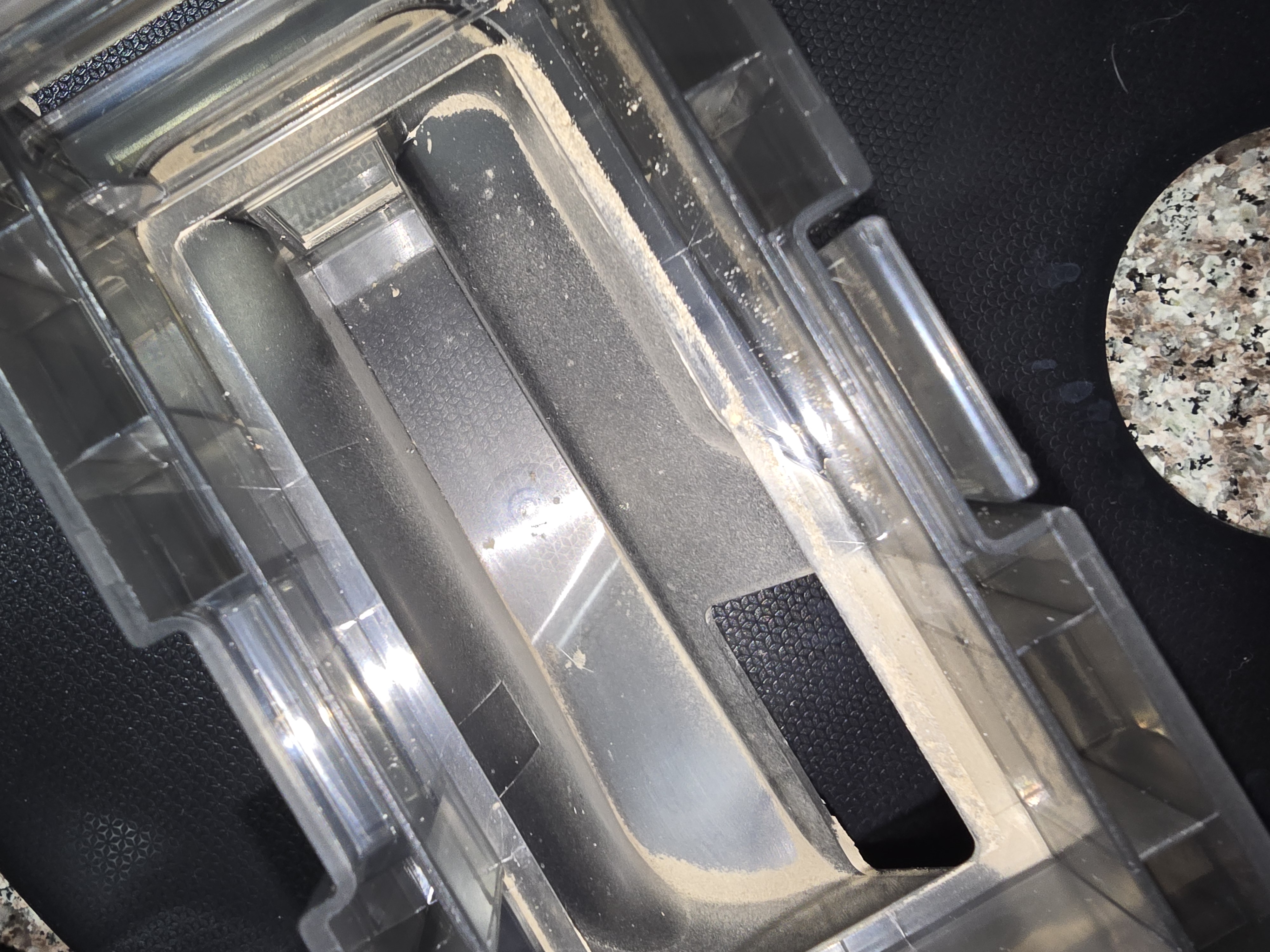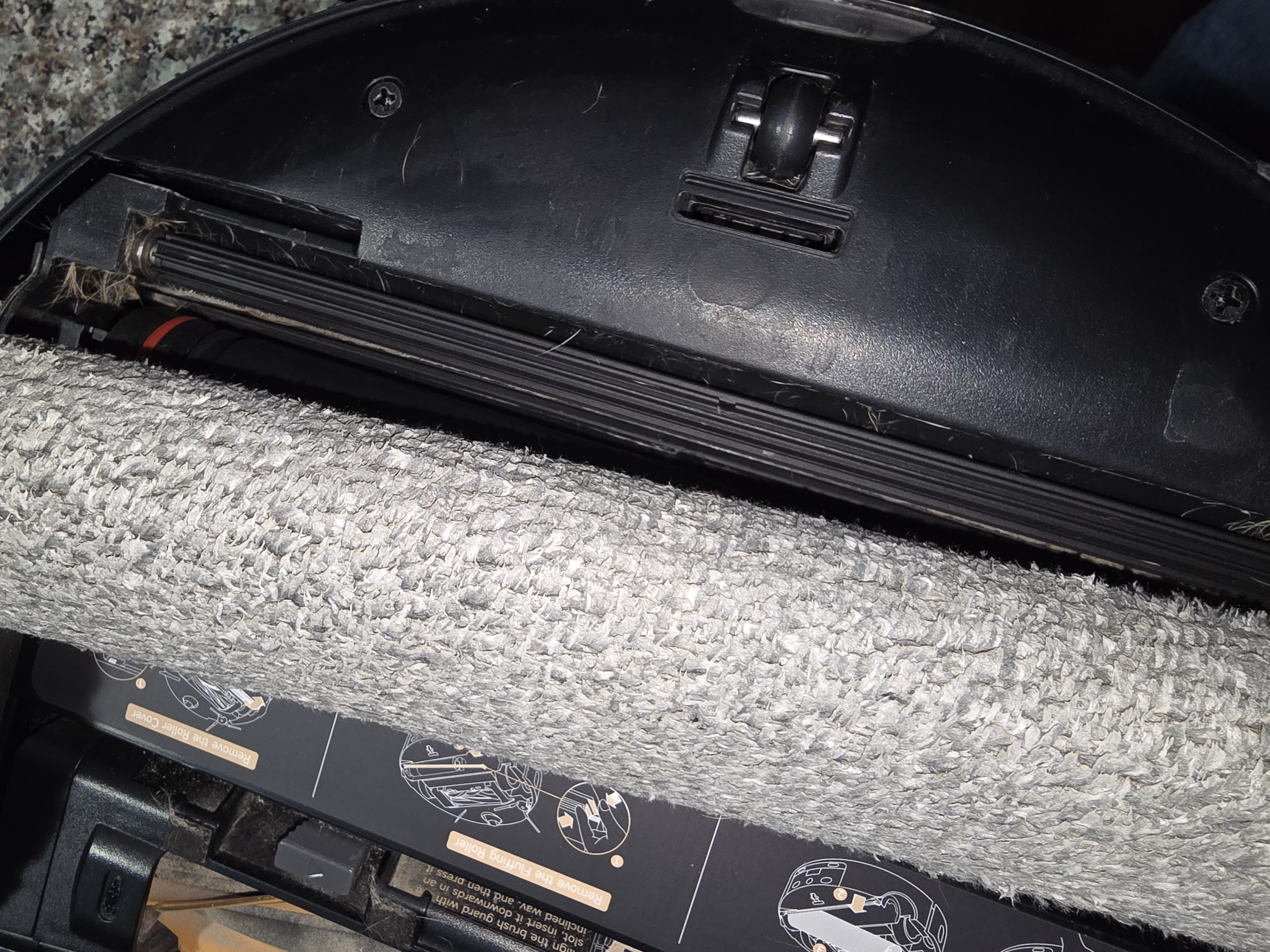 I thought I would record a cleanup with some photos. I've been using the machine about 3 weeks and this is my second clean up. I received a message last night when I was running it that the bag in the base was full and needed to be emptied. As I've done numerous times I'll compare it with my P10. I think I changed the bag in the P10 three times in a year and here we are at the three week Mark and it's telling me I need to empty the bag. I checked the bag and it is definitely no more than a quarter full but for some reason it's registering as needing replacement. You can see in the pictures that the dustbin in the machine is fully empty so it is pulling it out really nicely. I will say that the filter clogs incredibly quickly and that may be because of the additional suction pulling more of the fine dirt and dander up into the filter and not dropping it into the cup. I'm only cleaning about 30 m squared and my floors are not that dirty because they're cleaned every single day. It's just me and the two dogs so we do get some dog hair and slobber but it's typically not incredibly dirty. Other than a small area rug at the door everything else is hard flooring. You can see in the picture from the sink how much dirt fell out of the filter from just tapping. Overall I don't really have an issue with the vacuuming it's more an issue with the mopping. If you can see on the mop roll it appears to be very matted. I have been incredibly uncertain about the mop portion of the unit. I was very excited for the cylindrical mop but I'm not convinced that it is any better or to be honest even as good as the round mop pads on the p10s. Everything is cleaned out and the bag has been emptied so we'll see how everything goes tonight.
