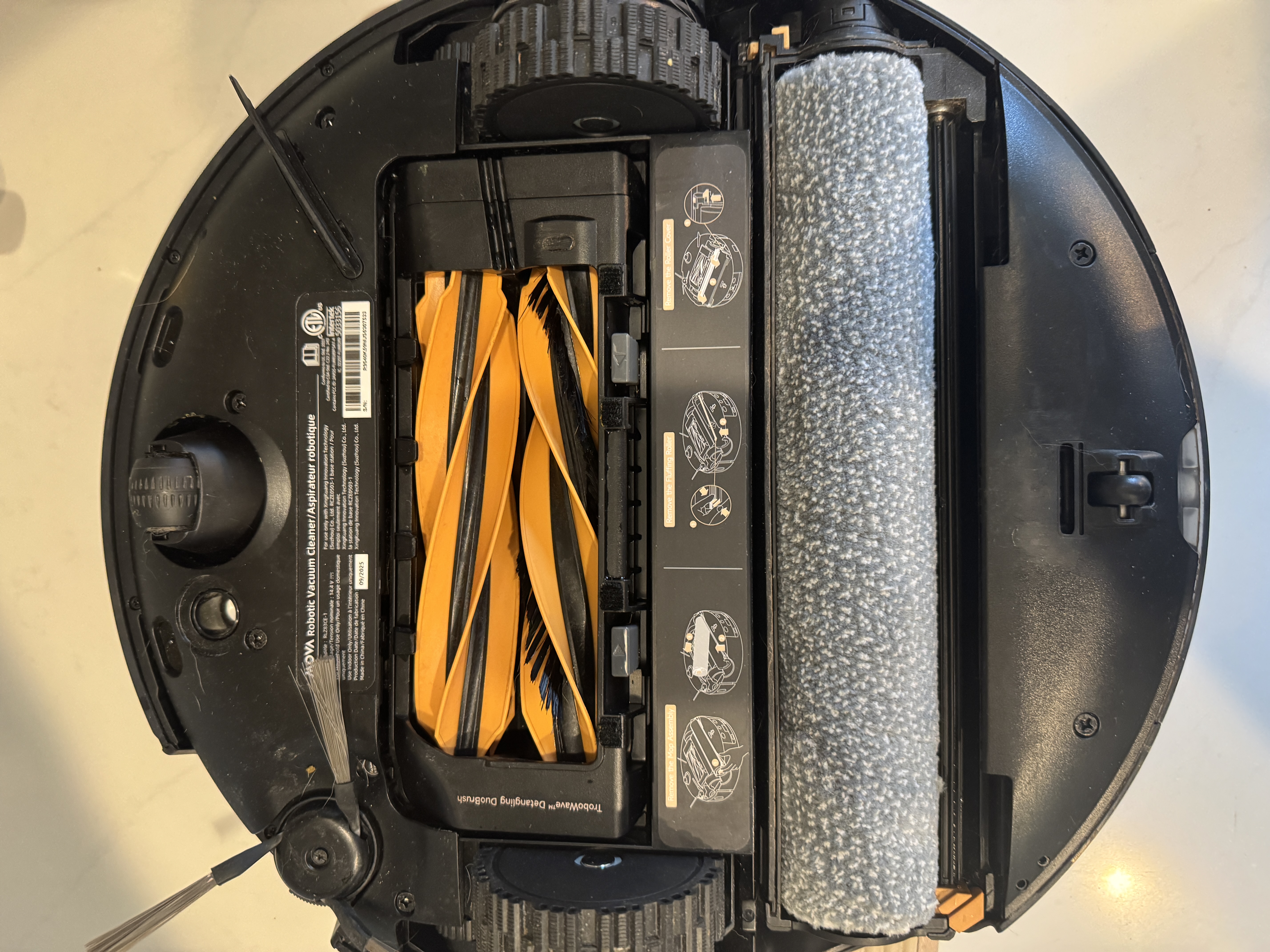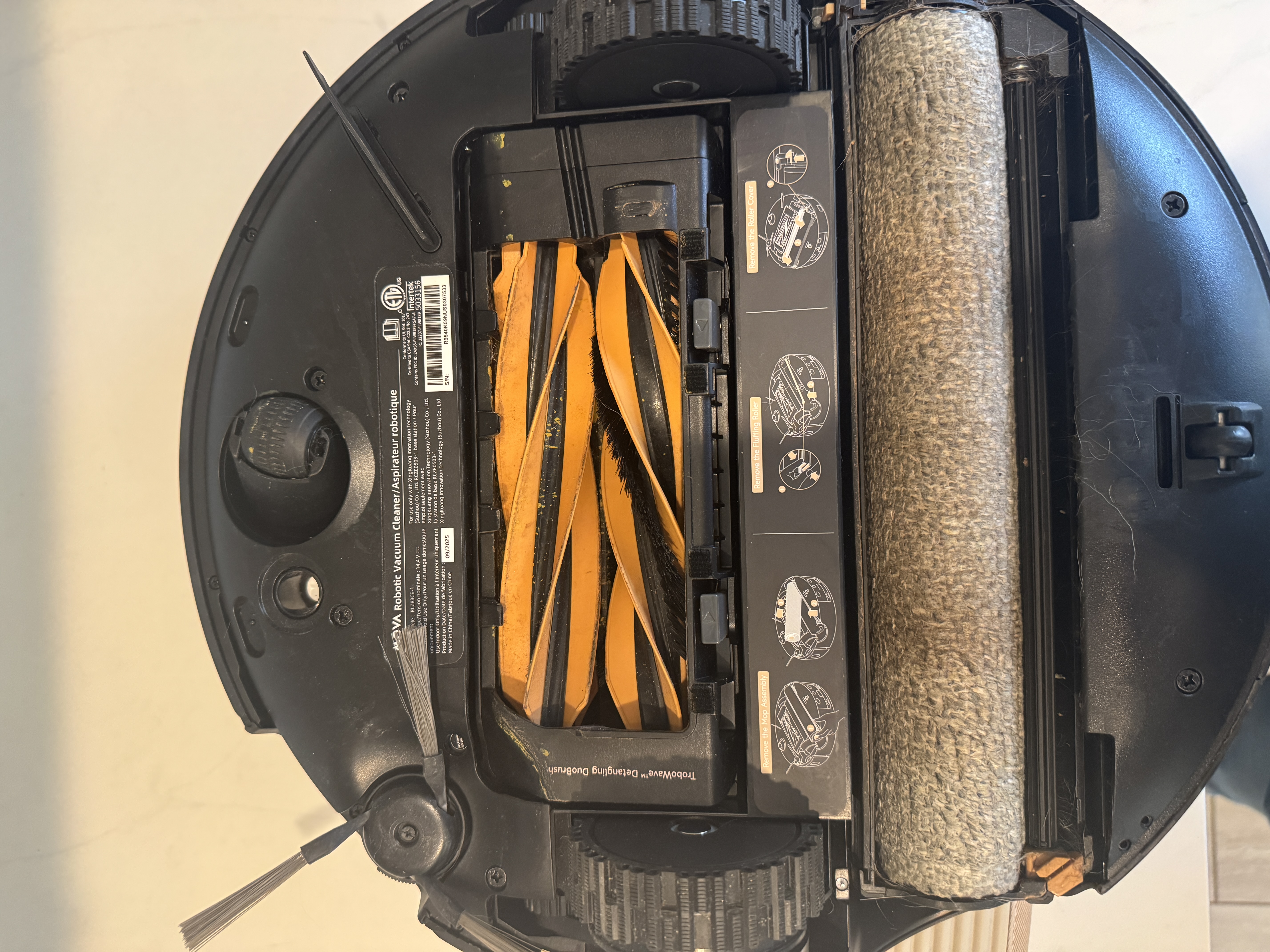 After about a month of using the Mova, I finally took some time to clean the actual vacuum itself, and I was honestly impressed with how simple the whole process was. I pulled out the mop roller to swap it, and you can definitely see it had picked up some dirt from regular use, which is expected. What stood out to me though was the vacuum side. The fins were still in really good shape, not frayed or worn down, so instead of replacing them I just pulled everything out, gave it a quick clean, and put it right back together.
